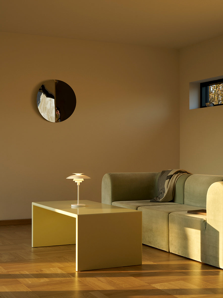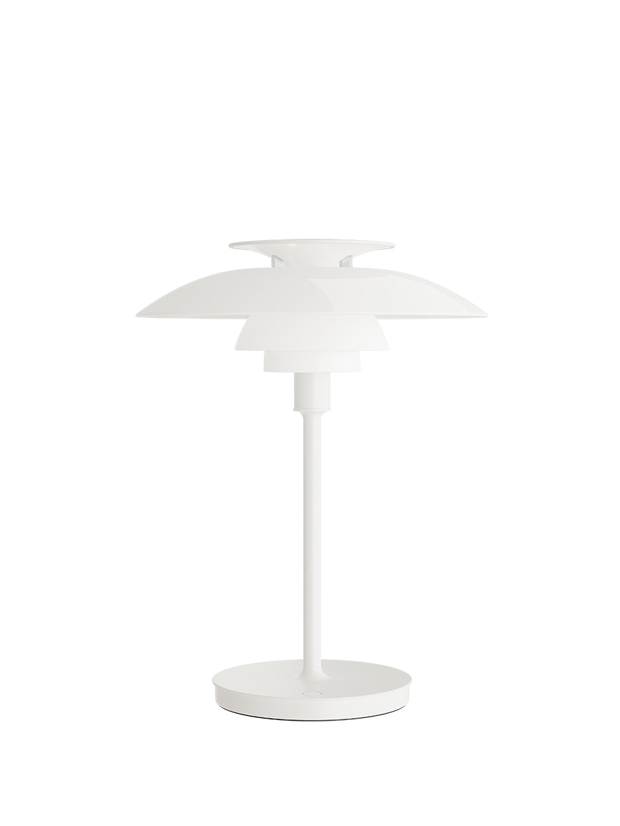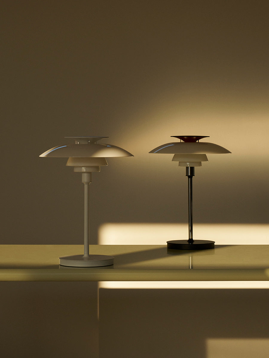 Den ikoniske PH 80 lampe, designet af Poul Henningsen, præsenteres nu i en bærbar version, der bringer klassisk dansk design ind i en moderne og fleksibel hverdag. PH 80 Portable viderefører det velkendte treskærmsprincip og giver et behageligt, blændfrit lys med både nedadrettet belysning og en blød ambient glød.