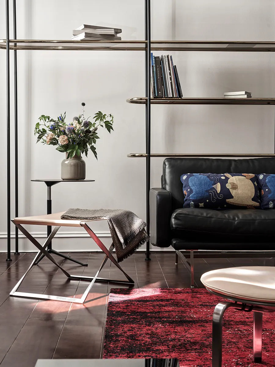 Grace læder: Fuldnarvet med let struktur. Meget blød (derfor sårbar over for skarpe genstande). Elegance patineres i brug. Dækfarve uden beskyttelseslak.