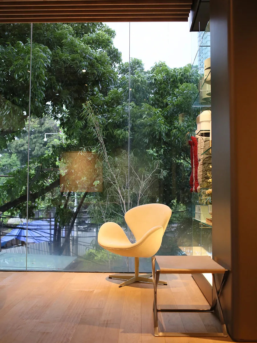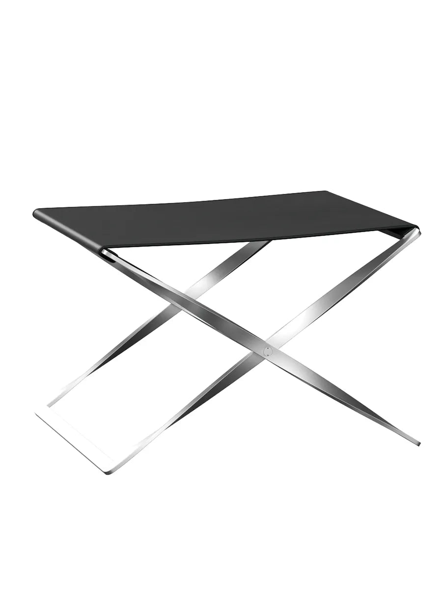 Foldestolen er lavet af satinbørstet rustfrit stål.