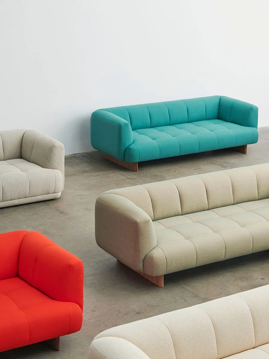 Hays populære Quilton Sofa kommer nu i en version, der har ben. Hay Quilton Lift sofaen består af kontraster. De lette ben, der bærer på den voluminøse sofa. Quilton sofaen er fast, dyb og voluminøs. Sofaen indbyder til hyggelige stunder, afslapning og gode stunder med familie og venner. Benene på Quilton Lift fås i forskellige træsorter, og sofaen kan polstres i et utal af tekstiler.