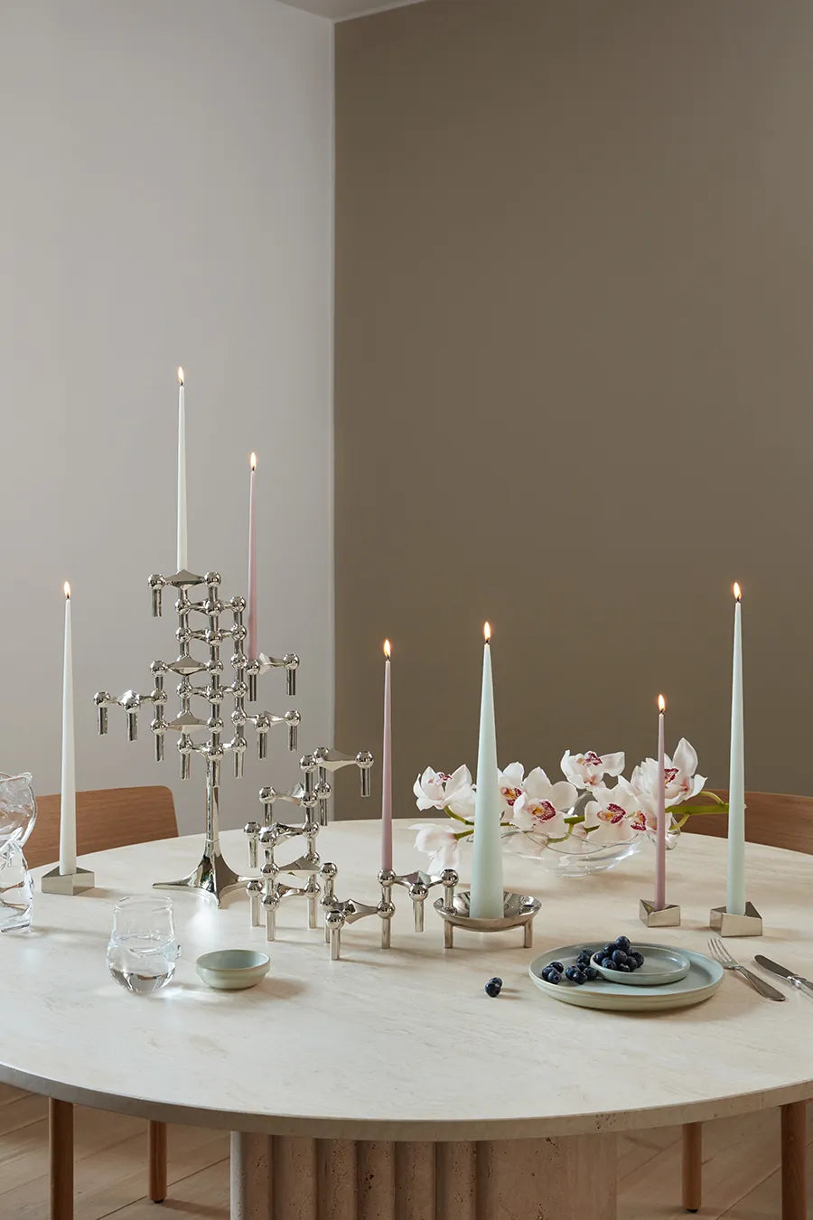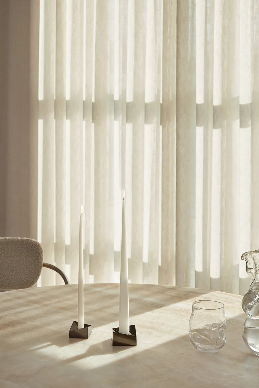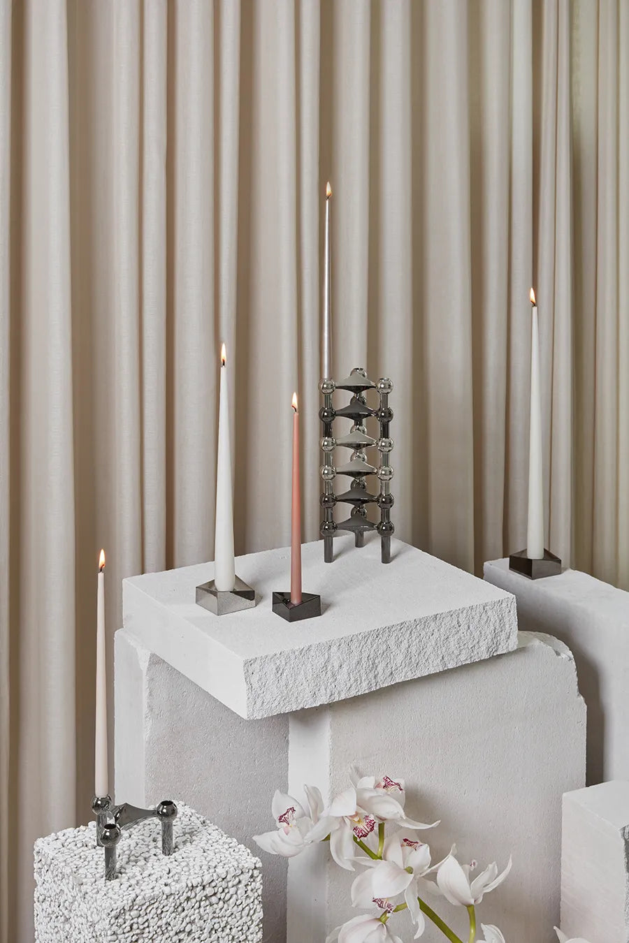 Reflect er en smuk og tidløs lysetage. Stagen har et enkelt design med geometriske former, der leger med refleksioner og lys. Du kan få den i en lille og stor udgave, som passer til henholdsvis traditionelle stearinlys og til Stoff Nagel kertelys. Kombiner dem med flere størrelser, farver og andre stager fra Stoff Nagel for et personligt udtryk.