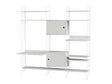 Kombinationen er gulvmonteret med høje paneler, som giver et stabilt og arkitektonisk udtryk, samtidig med at reolen stadig virker luftig. I farven White White bliver helheden lys, ren og tidløs, perfekt til både skandinaviske hjem, moderne indretninger og mere klassiske rum, hvor du ønsker en diskret, men gennemført opbevaringsvæg. Som altid med String System kan du justere højder, flytte elementer og udvide senere, så Living room P kan vokse med dine behov.