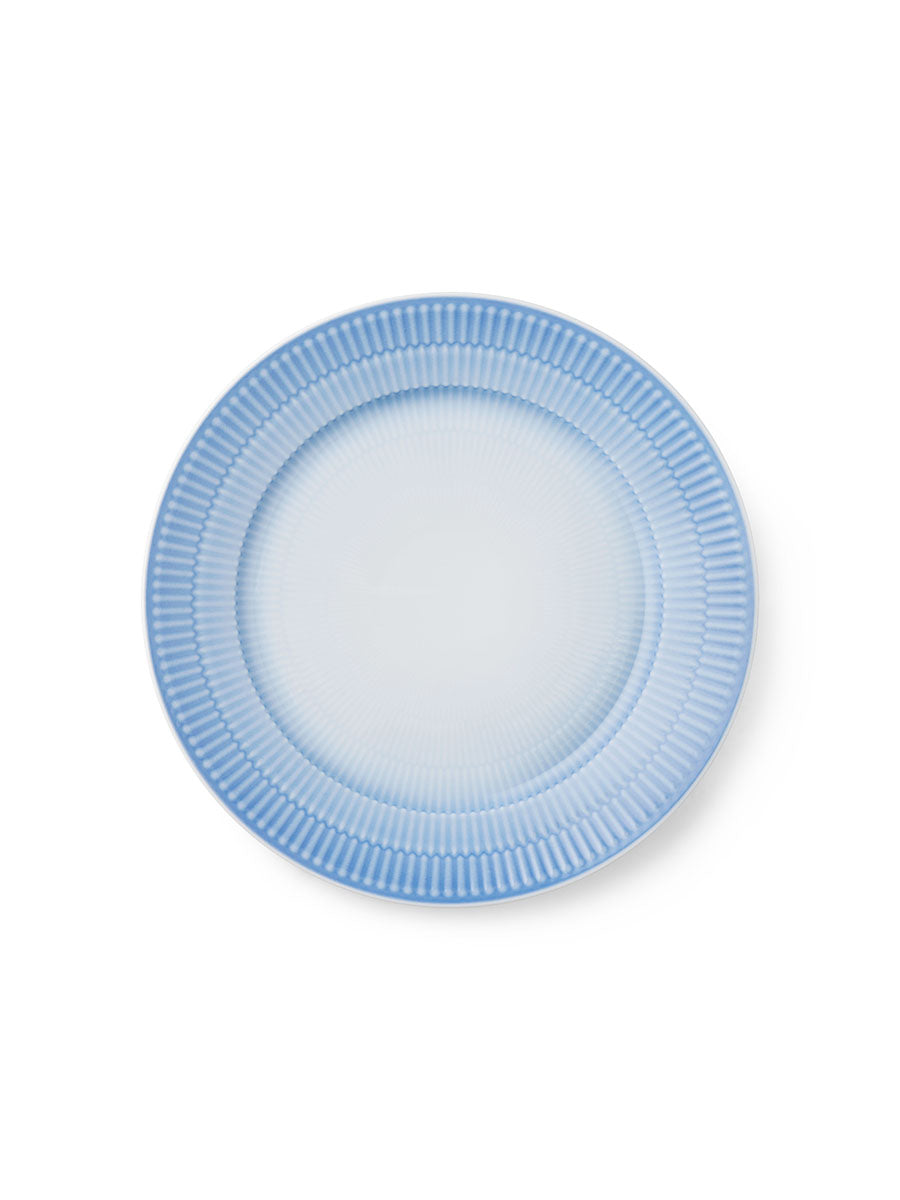 Størrelsen på 22 cm er oplagt til lette serveringer. Brug den til frokost, salater, kager og små anretninger, eller lad den fungere som en elegant mellemstørrelse i en lagdelt borddækning. Den blå tone fungerer som et roligt farvepunkt og kan styles både tone i tone med andre blå nuancer eller som kontrast til neutralt porcelæn, træ og stentøj. Iris er også oplagt til dig, der elsker at mikse stel, fordi riflerne skaber en naturlig sammenhæng, mens farven gør udtrykket mere personligt og nutidigt.