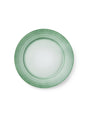 Royal Copenhagen Iris tallerken 22 cm i grøn er en frisk og rolig tilføjelse til borddækningen, hvor farven tilfører et naturligt løft uden at tage over. Den grønne tone giver en smuk kontrast til porcelænens klare hvid og fremhæver de ikoniske rifler, som Iris serien bygger videre på med et mere moderne og legende udtryk. Glasuren er sprøjtemalet i hånden og toner blødt ind mod midten, så tallerkenen får et levende farvespil, der gør hver servering mere indbydende, fra en enkel frokost til en fin dessert.