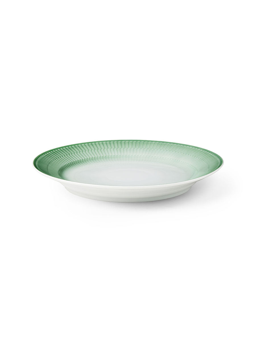 Royal Copenhagen Iris tallerken 27 cm i grøn er til dig, der vil give borddækningen et friskt og naturligt løft, uden at det bliver for dominerende. Den grønne tone har en rolig dybde, som klæder både hverdagsmåltider og mere festlige serveringer, og den fungerer smukt som farvepunkt på et ellers neutralt bord. De klassiske rifler giver et genkendeligt Royal Copenhagen udtryk, men i Iris kollektionen får håndværket en mere moderne lethed, hvor farven spiller hovedrollen og skaber liv i porcelænet.