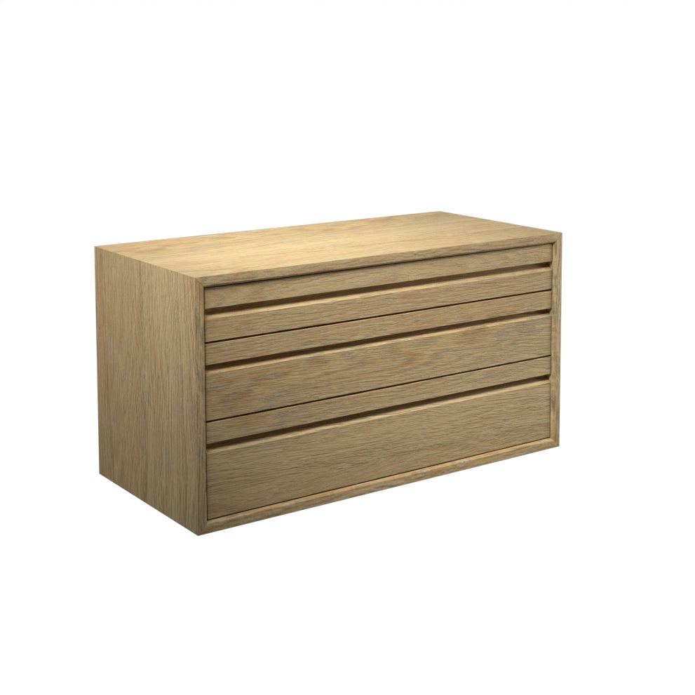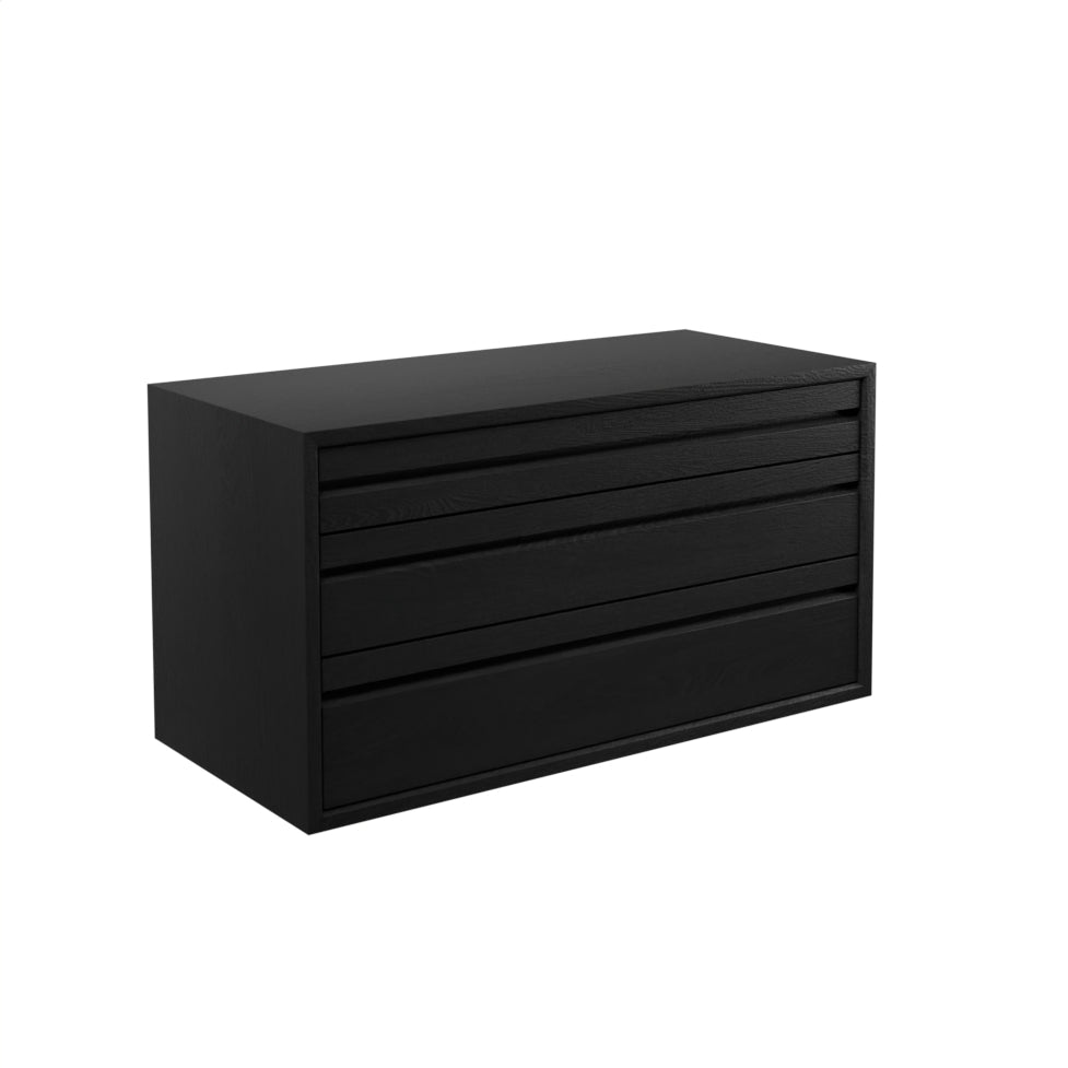 Modulet har 3 skuffer og er inklusiv ophæng til vanger/lister.