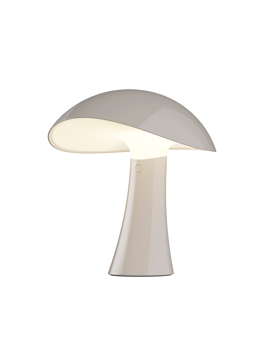 Rumee 220 Portable er designet af Gabriel Tan. Rumee er en bærbar lampe, der bringer varme og skulpturel elegance ind i ethvert rum. Inspireret af formen på en bred bølgende hat kombinerer Rumee et organisk asymmetrisk udtryk med funktionalitet, der gør den nem at tage med fra rum til rum eller ud i haven.