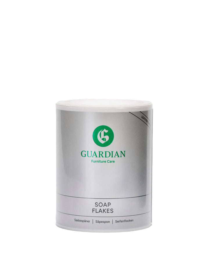 Guardian sæbespåner er et specielt fremstillet 100% naturprodukt. Guardian sæbespåner er fremstillet af palmekerneolie og kokosolie. Guardian sæbespåner indeholder ikke parfume, farve, optisk hvidt eller blegemiddel og er derfor specielt velegnet til møbellæder. Guardian anbefaler, at De behandler Deres møbler 4 gange om året med sæbespånerne.