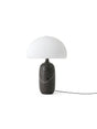 Den runde cylinderbund, der fås i enten grå eller hvid marmor, har en lysdæmper og en stofdækket ledning.