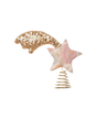 Giv dit hjem et strejf af bæredygtig elegance og håndværksmæssig charme med Shooting SILK Top Star fra Sissel Edelbo – en stjerneformet dekoration fremstillet af upcycled vintage silkesari, dekoreret med glimtende guldpailletter og med en gylden spiral til ophæng. Hver enkelt stjerne er unik – stoffet har båret liv og historie, og selv de fine imperfektioner væver fortællingen videre. Placer den på juletræets top, som blikfang på væggen eller som et smukt accent-element i boligindretningen, og lad materialets tidligere liv og håndens arbejde skinne i rummet.
