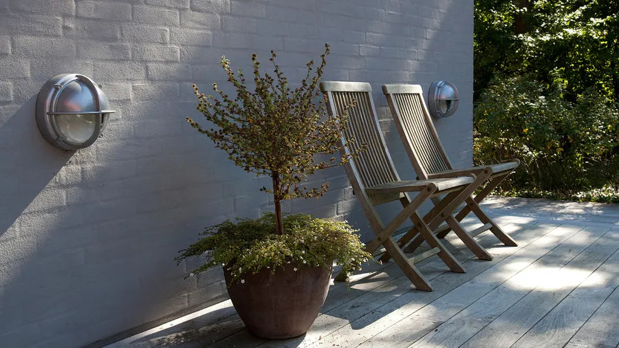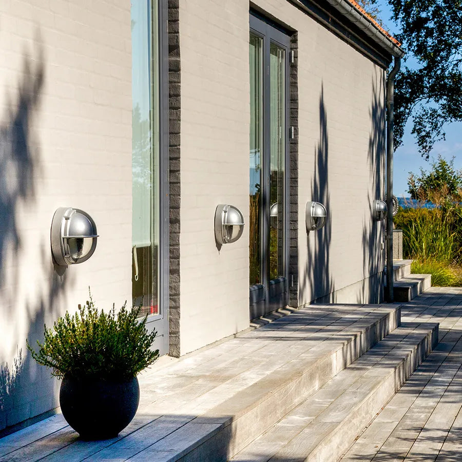 Skot væglampe fra Louis Poulsen. Armaturet fås med to slags lysdistribution: Symmetrisk og halvafskærmet. Den halvafskærmet er specielt anvendelig til vægmontering, hvorimod den symmetriske er anvendelig til både loft og væg. Den opale afskærmning udsender et blødt og behageligt lys.