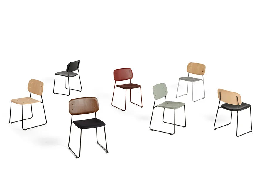Soft Edge 50 Sled stolen fra Hay er designet af designduoen Iskos-Berlin. Den simple og elegante stol giver et let udtryk og har den smarte funktion af de kan stables. Det brede rygstykke giver god støtte og komfort. Denne version af stolen er med sædepolstring. Vælg mellem flere varianter.