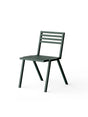 Havestol i en flot mørk grøn fra 19 Outdoors. Stolen er lavet i aluminium og er pulverlakeret. Den æstetisk flotte og enkle stol har den praktiske funktion at den kan stables, så den er let at pakke væk om vinteren og ikke fylder meget.