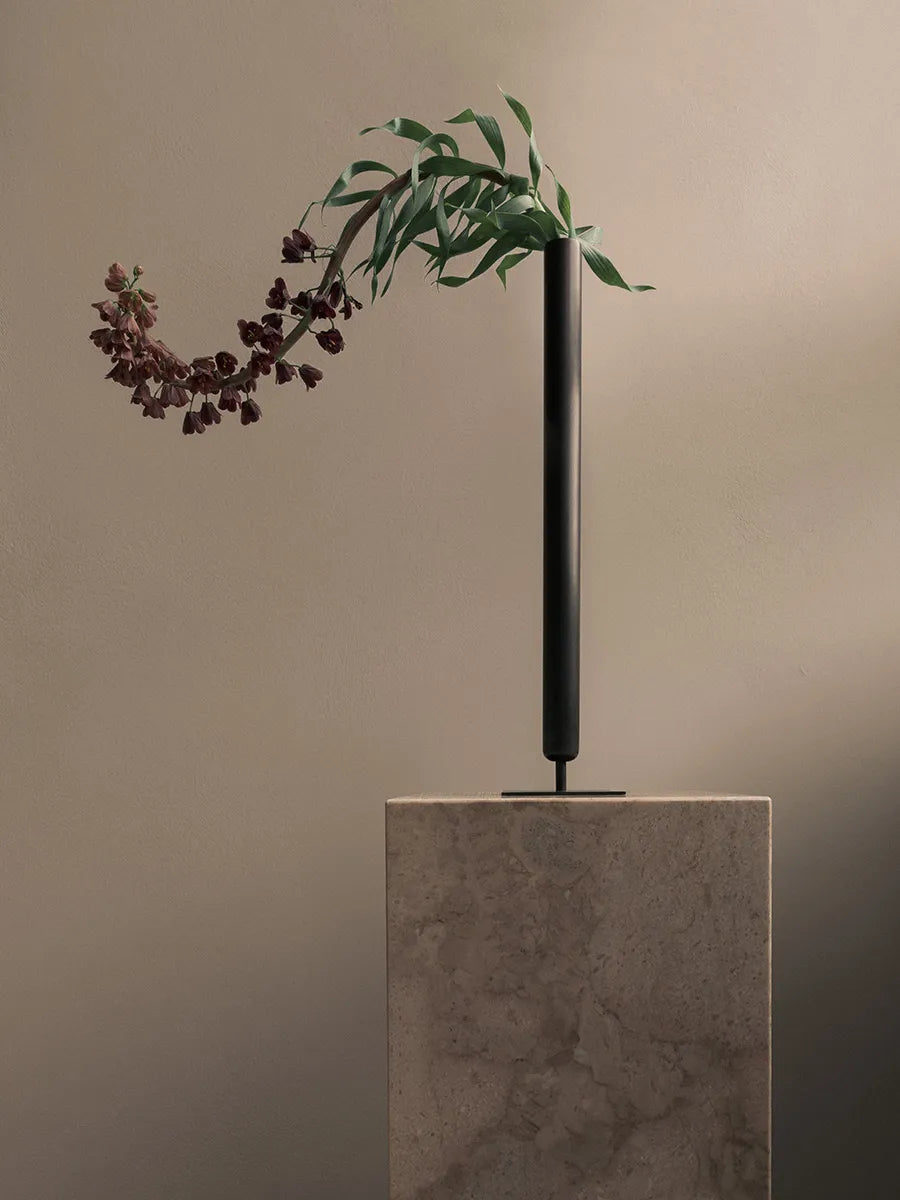Stance vasen er simpel, elegant og sofistikeret. Det slanke look står i flot kontrast til materialet, bruneret messing. Stance vasen er skulpturel af udseende, men fungerer også super flot med en tyndstilket buket eller en enkelt blomst. Stance vasen fås i to forskellige størrelser, og de er flotte at bruge sammen. Mål: H 50 x Ø 11 cm Materiale: Messing