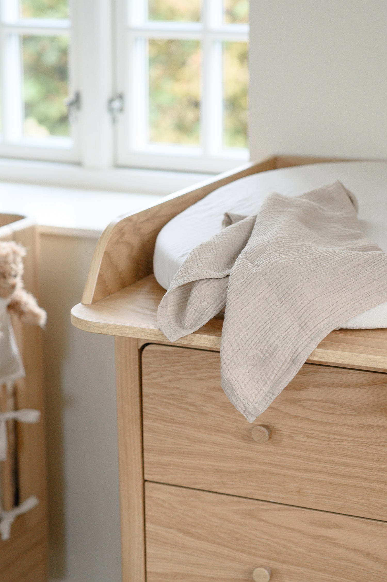 Disse stofbleer fra We Are Bitte er fremstillet i blød bomuldsmusselin, som er både åndbar og ekstra skånsom mod barnets sarte hud. Materialet føles let og behageligt og er ideelt til daglig brug – uanset om de bruges som stofble, nusseklud eller til pusletid. Sættet består af to klude i de rolige, naturlige nuancer Light Sand og Clay, der tilfører et tidløst og harmonisk udtryk til hverdagen. Med fokus på funktionalitet, enkelhed og naturlige materialer er disse stofbleer et praktisk og æstetisk valg til både hjemmet og pusletasken. Størrelsen er 65 x 65 cm, og kvaliteten er 100 % økologisk bomuld.