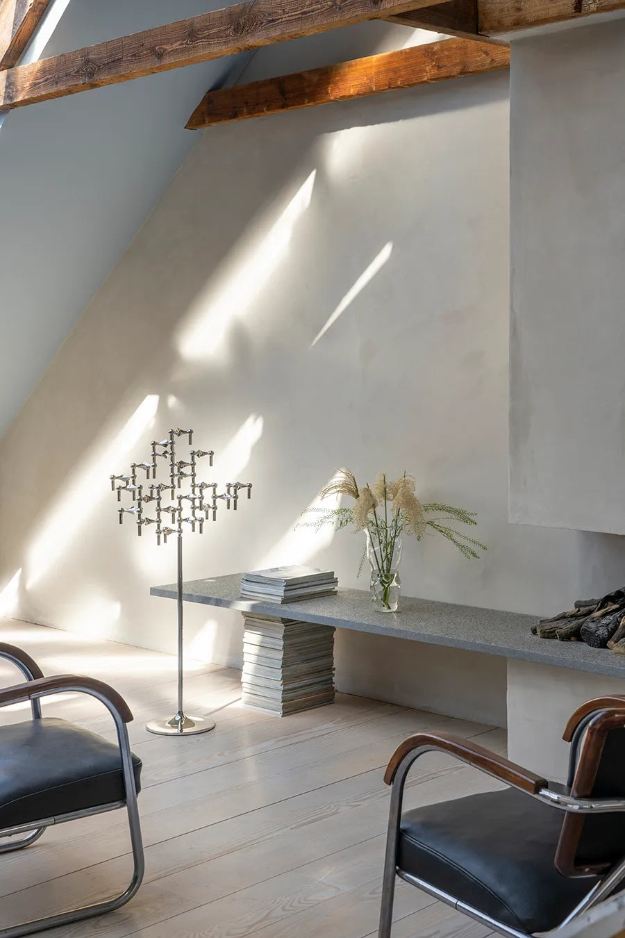 Nu kan du få endnu mere ud af din samling af de populære og smukke lysestager fra STOFF Nagel. Brug dine lysestager i gulvstanderen og skab en flot skulptur med levende lys. Du kan selv bestemme og justere hvor mange lys, du ønsker.