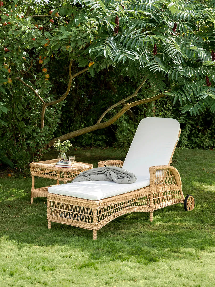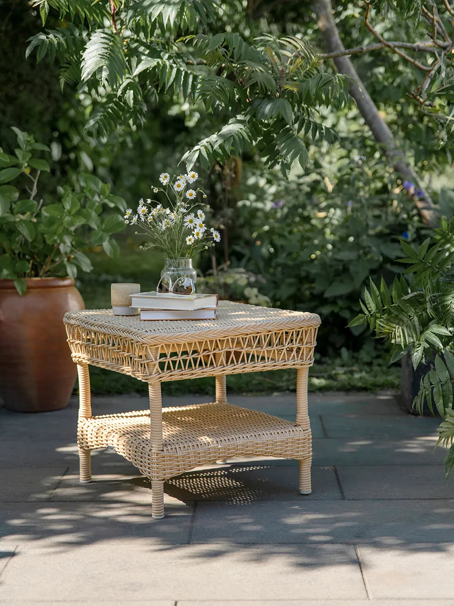 Susy sidebord fra Sika-Design. Fet lille sidebord fra Sika med Antique flet. Undgå rod på terrassen med Susy side table, hvor hylden under bordet opfordrer til orden. Her er plads til avisen, solcremen eller til kurven med petanque-kugler.