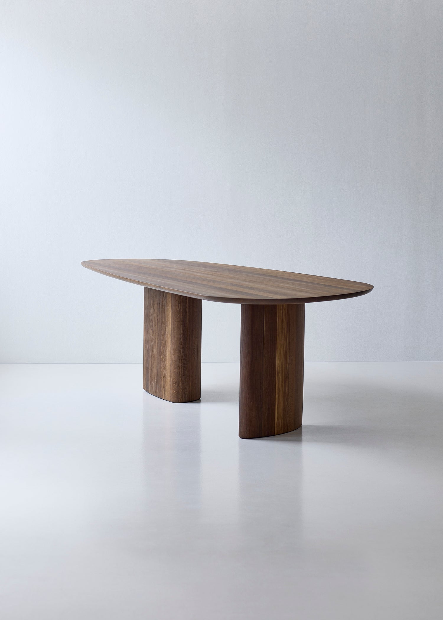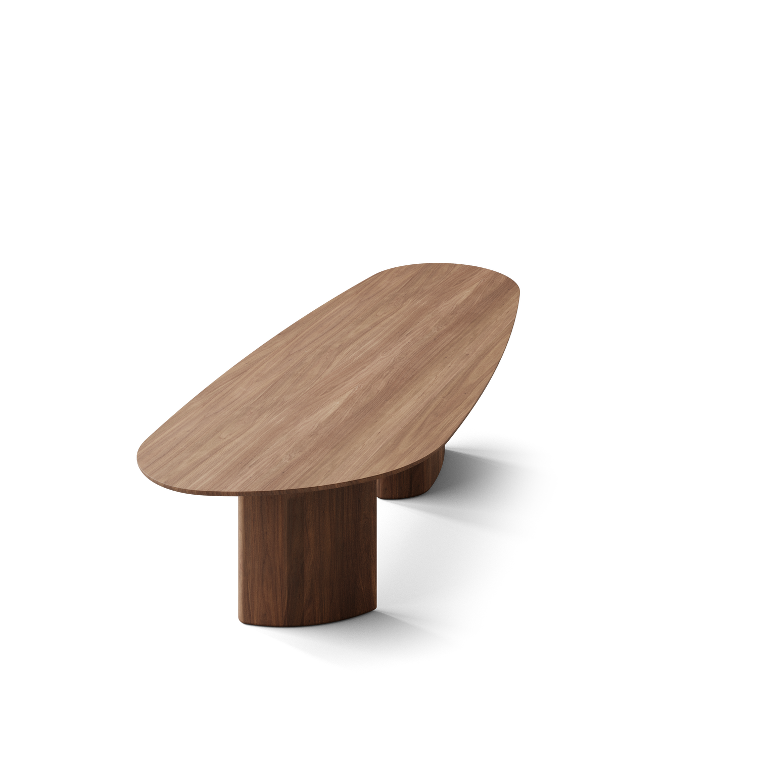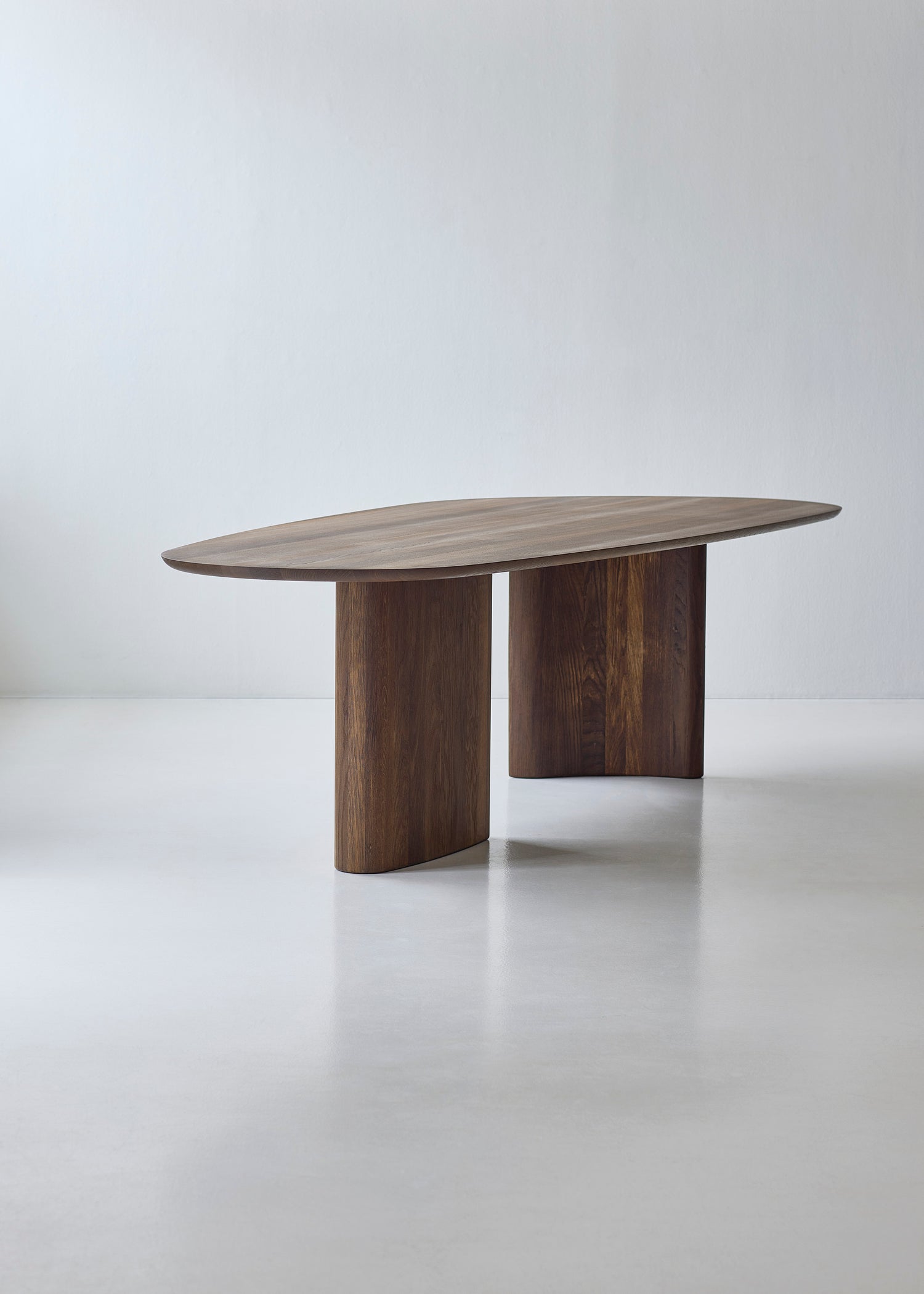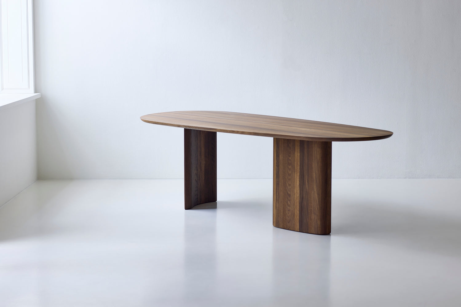 Designet er skabt af den danske arkitekt og designer Anne Boysen, som i Tangent arbejder med tangentielle kurver der mødes i fine, balancerede proportioner. Resultatet er et bord med en levende silhuet, der forandrer sig, når du går rundt om det, men som stadig virker roligt og indbydende ved første øjekast. Den gennemtænkte placering af understellet giver god benplads langs hele bordpladen, så man sidder komfortabelt også når alle pladser er optaget. Det skaber den rette, uformelle ramme omkring både hurtige hverdagsmåltider og lange middage med venner og familie.