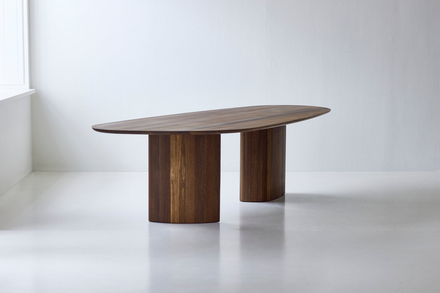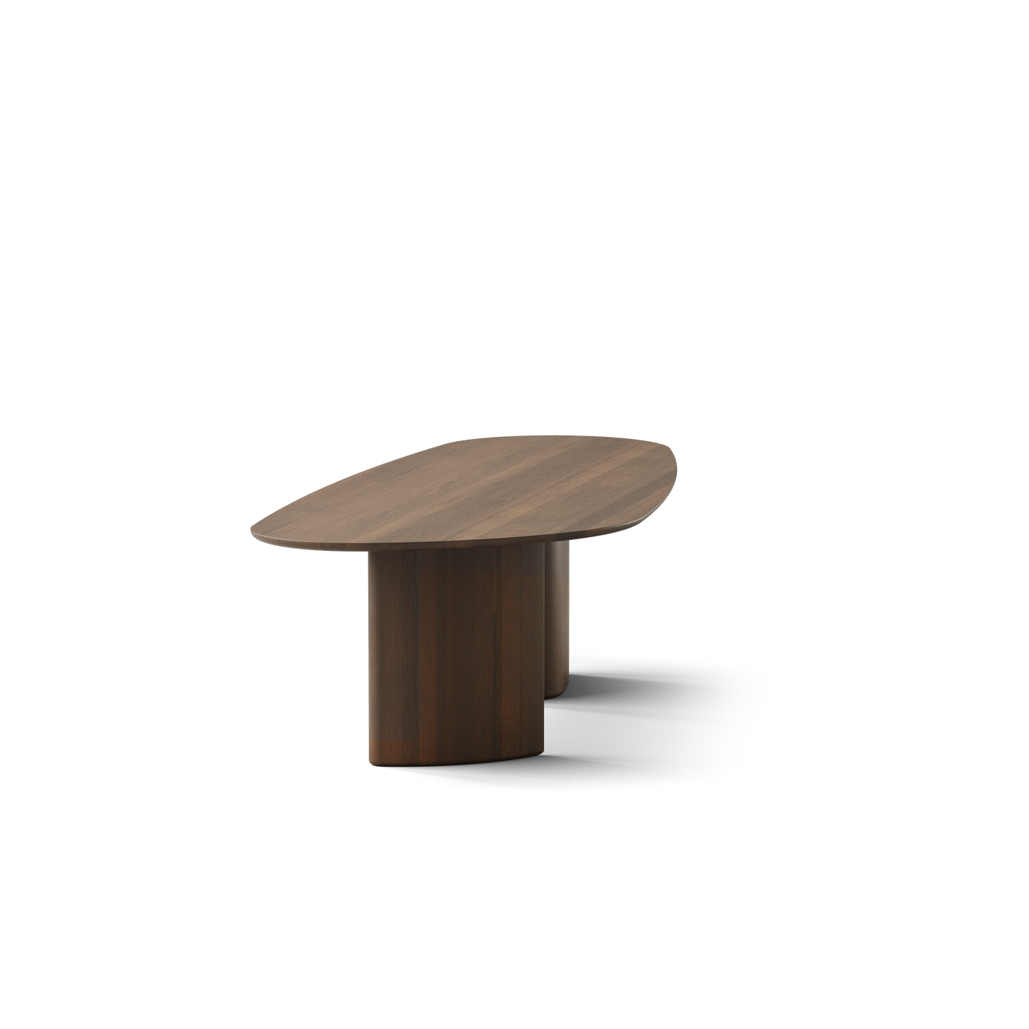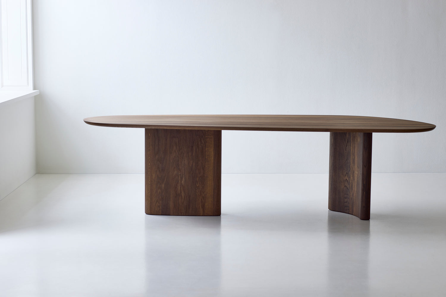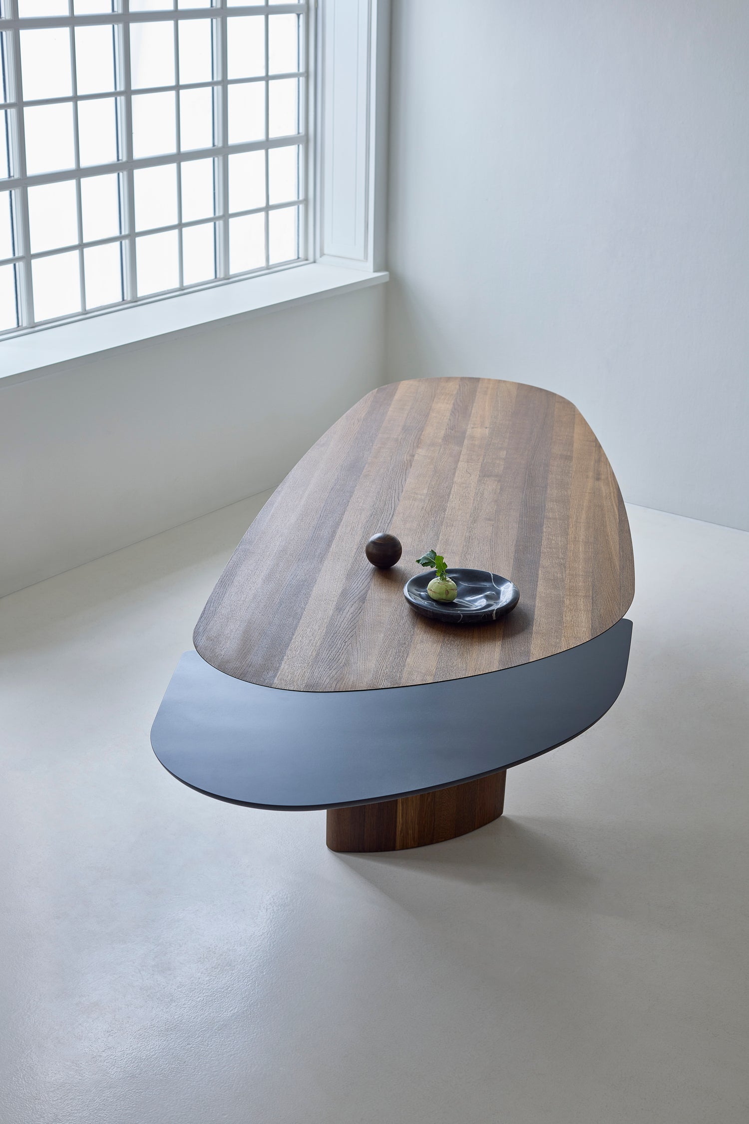 Designet er skabt af den danske arkitekt og designer Anne Boysen, som i Tangent arbejder med tangentielle kurver der mødes i fine, balancerede proportioner. Resultatet er et bord med en levende silhuet, der forandrer sig, når du går rundt om det, men som stadig virker roligt og indbydende ved første øjekast. Den gennemtænkte placering af understellet giver god benplads langs hele bordpladen, så man sidder komfortabelt også når alle pladser er optaget. Det skaber den rette, uformelle ramme omkring både hurtige hverdagsmåltider og lange middage med venner og familie.