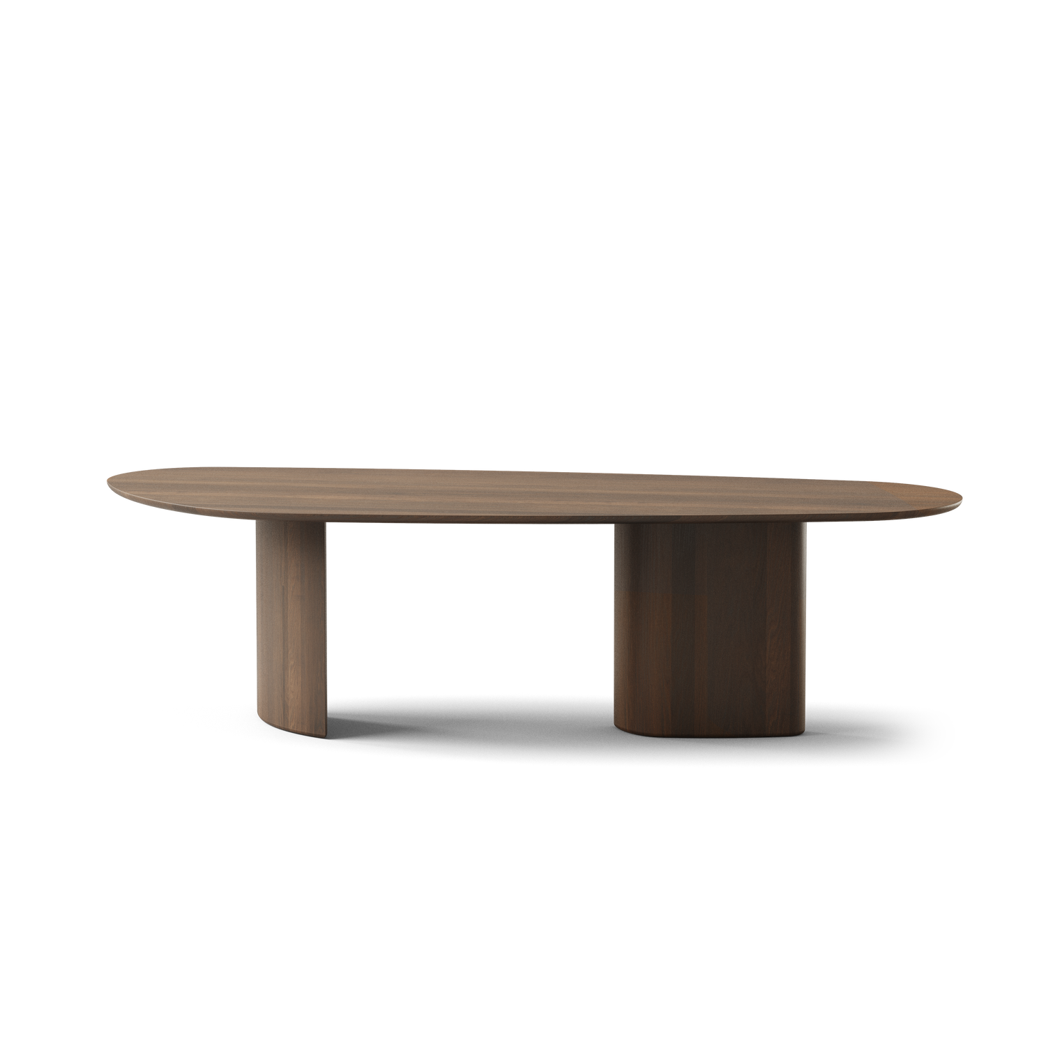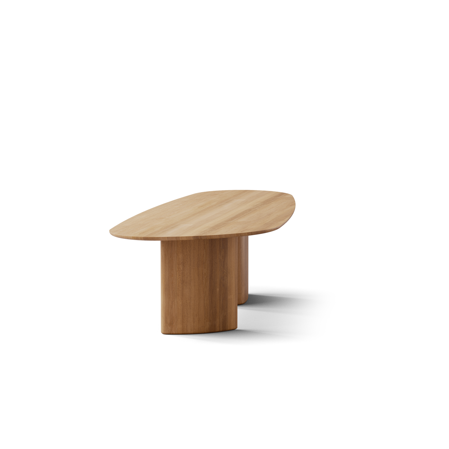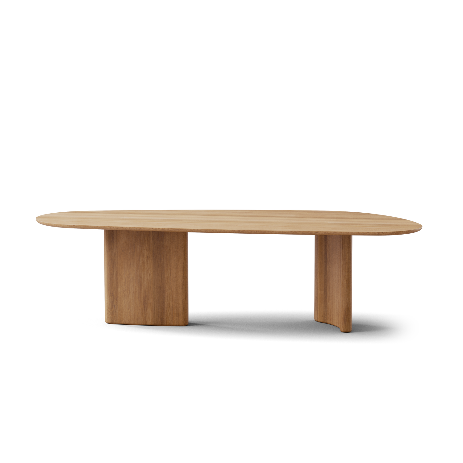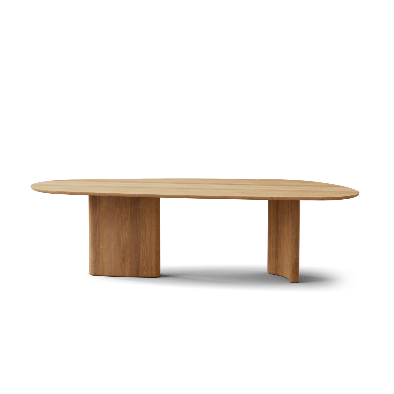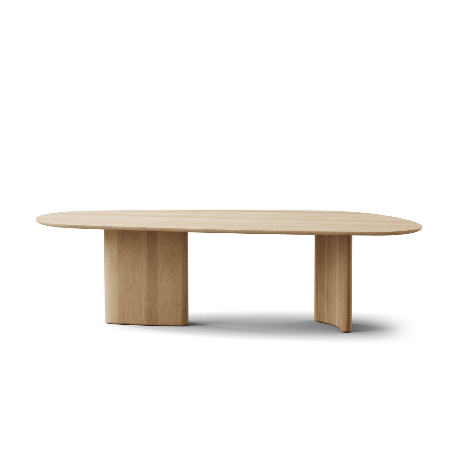 Tangent spisebordet fra dk3 er et stærkt eksempel på hvordan sanseligt håndværk og nutidig formgivning kan smelte sammen til et spisebord med karakter. I den rektangulære version i hvidolieret eg får du et møbel hvor de bløde kurver og den subtile organiske asymmetri i bordpladen giver en let og elegant rytme gennem rummet. Hvidolien bevarer egens lyse tone og tilfører en fin, fløjlsmat glød som fremhæver åretegningerne uden at gøre overfladen blank. Den afrundede kantprofil er behagelig at røre ved, og bordets skulpturelle udtryk holdes i ro af en solid base i massivt træ, så bordet opleves både let og stabilt. Tangent er det naturlige samlingspunkt i hverdagen, hvor form, funktion og materialitet går op i en højere enhed.