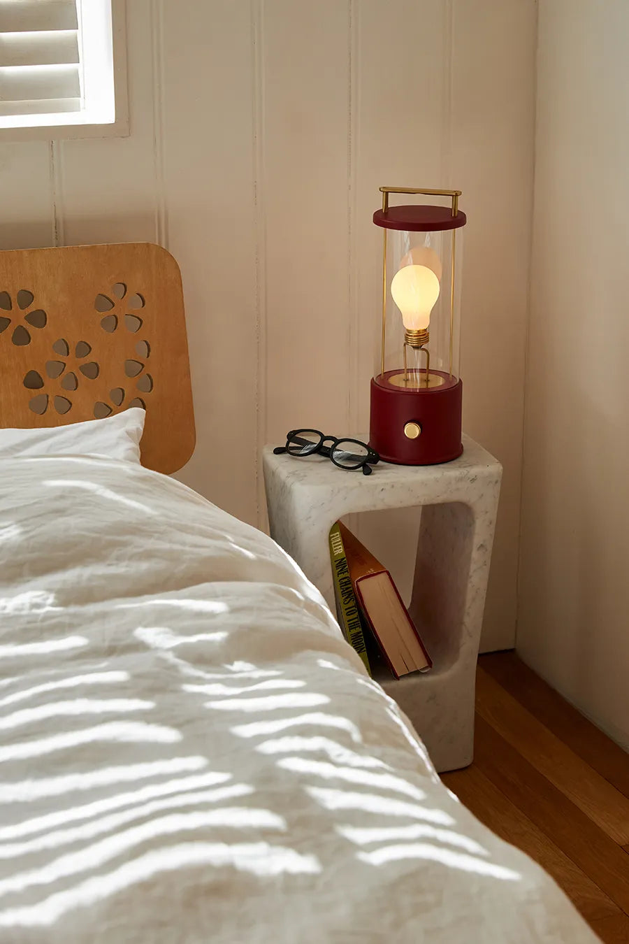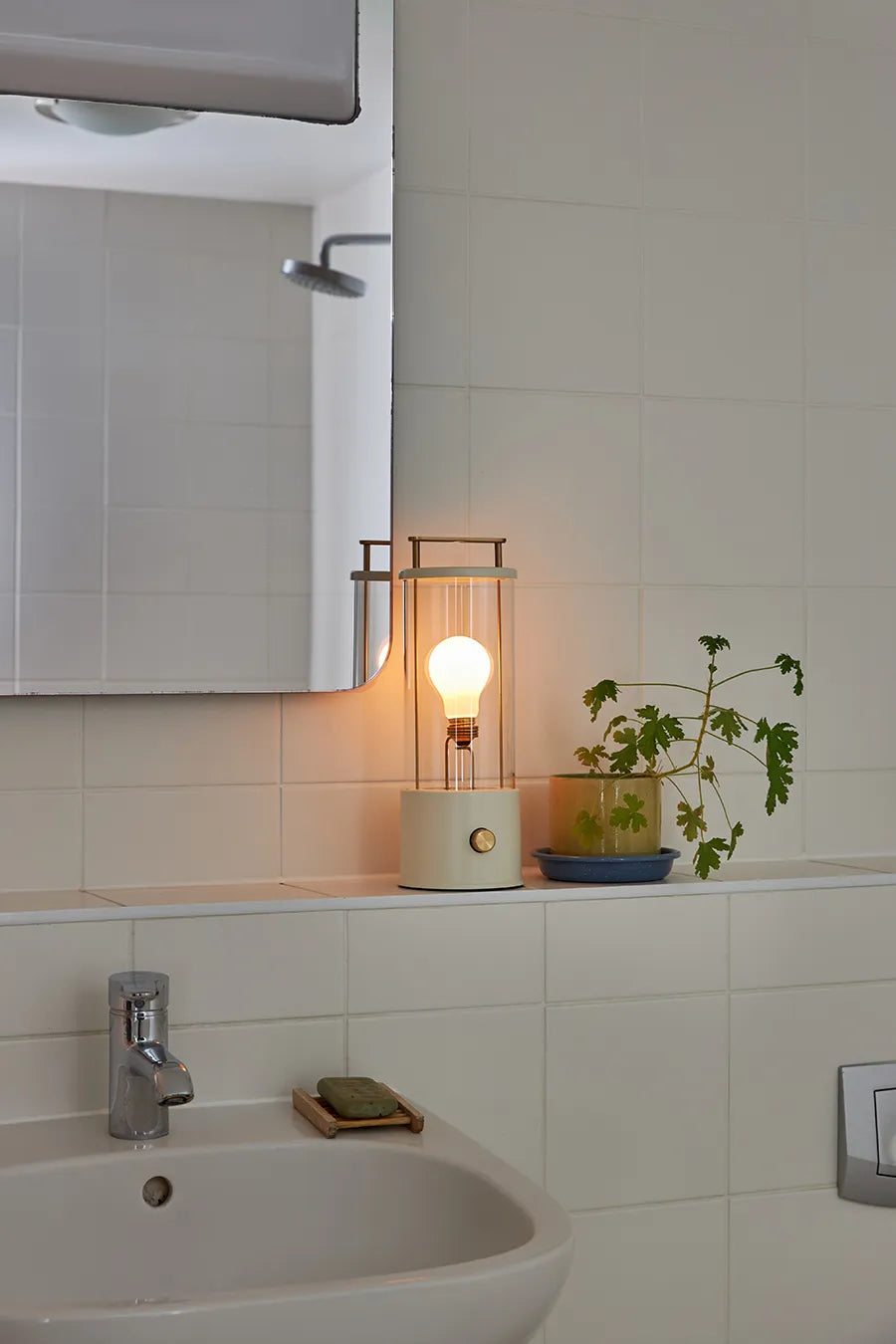 Tala har samarbejdet med de britiske og ikoniske farveeksperter Farrow & Ball om The Muse Portable lamperne. Her har de lavet lampen i den eksklusive farve Ponoma Red. The Muse portable er en tidsløs bærbar lampe. The Muse er et mix af den klassiske lanterne og moderne teknologi. Lampen har dæmpbar LED, hvilket gør lampen ideel i flere sammenhænge. Lampens batteri har lang levetid, hvilket gør at du ikke skal bekymre dig om lyset går ud, når du sidder og har en hyggestund. The Muse Portable lampen har IP-klassificeringen IP44, hvilket gør at du kan bruge lampen udendørs, da den kan tåle vind, vand og kulde. Lampen er nem at have med rundt, da den har en hank. The Muse i Ponoma Red kan bruges både som natbordslampe, som hyggelampe i stuen eller til spisebordet udenfor. Designer: Tala og Farrow & Ball Materiale: Pulverlakeret aluminium, messing, glas Farve: Ponoma Red Mål: H 33,8 x B 12,5 x L 13,5 cm Lyskilde: Watt: 10W IP-klassificering: IP44 Lumen: 400 Type: LED Kelvin: 2000-2800K Dæmpbar: Ja