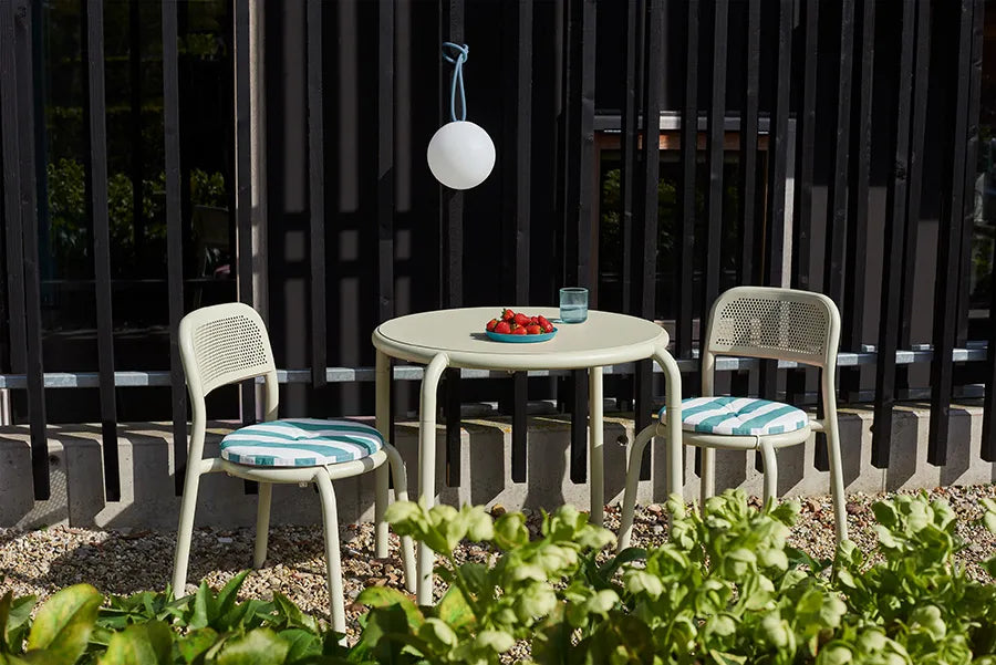 Toni sædehynde passer til de to Fatboy Toni stole med eller uden armlæn. En UV-resistent og skridsikker hynde, som er vand- og smudsafvisende og med snore til at fastgøre hynden til stolen.