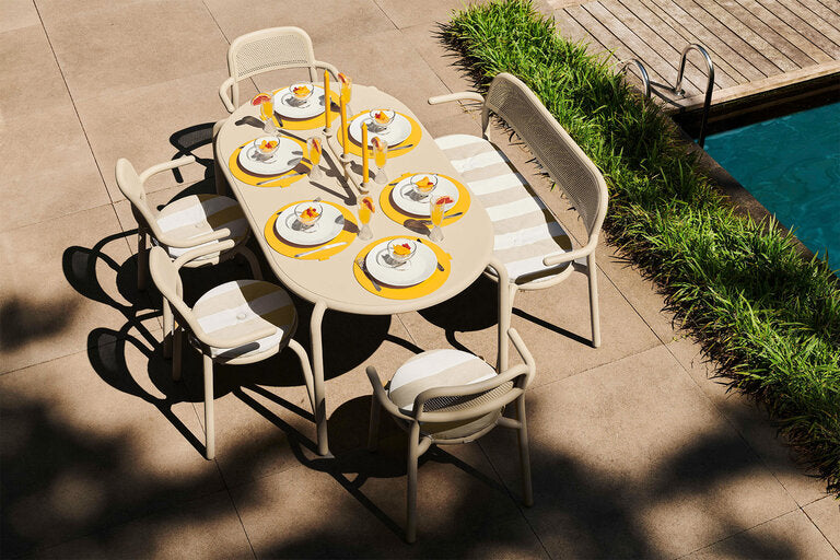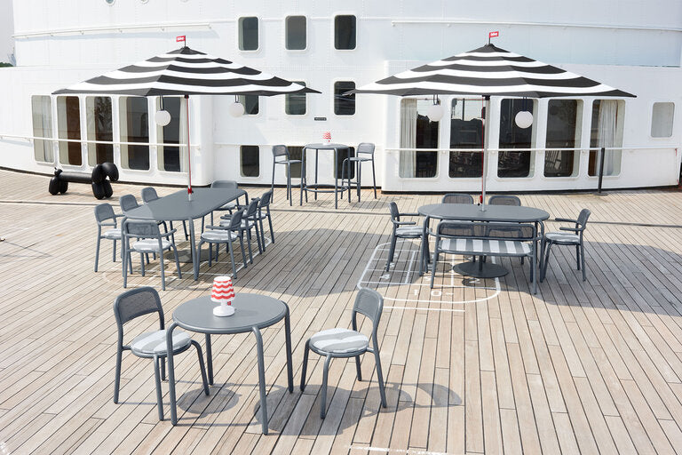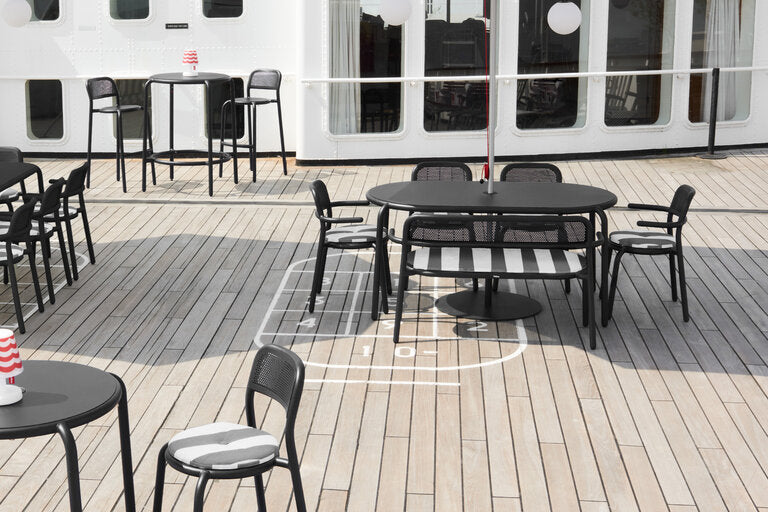 Det udendørs spisebord Fatboy Toni Tavolo har en længde på 160 cm har plads til op til 6 personer. Et pænt og praktisk bord i aluminium med hul i bordpladen - eksempelvis til en parasol eller den sjove Toni lysestage, som Fatboy har lavet i samme serie. Bordet er nemt at vedligeholde og er rustfrit, farvefast og tåler alt slags vejr.