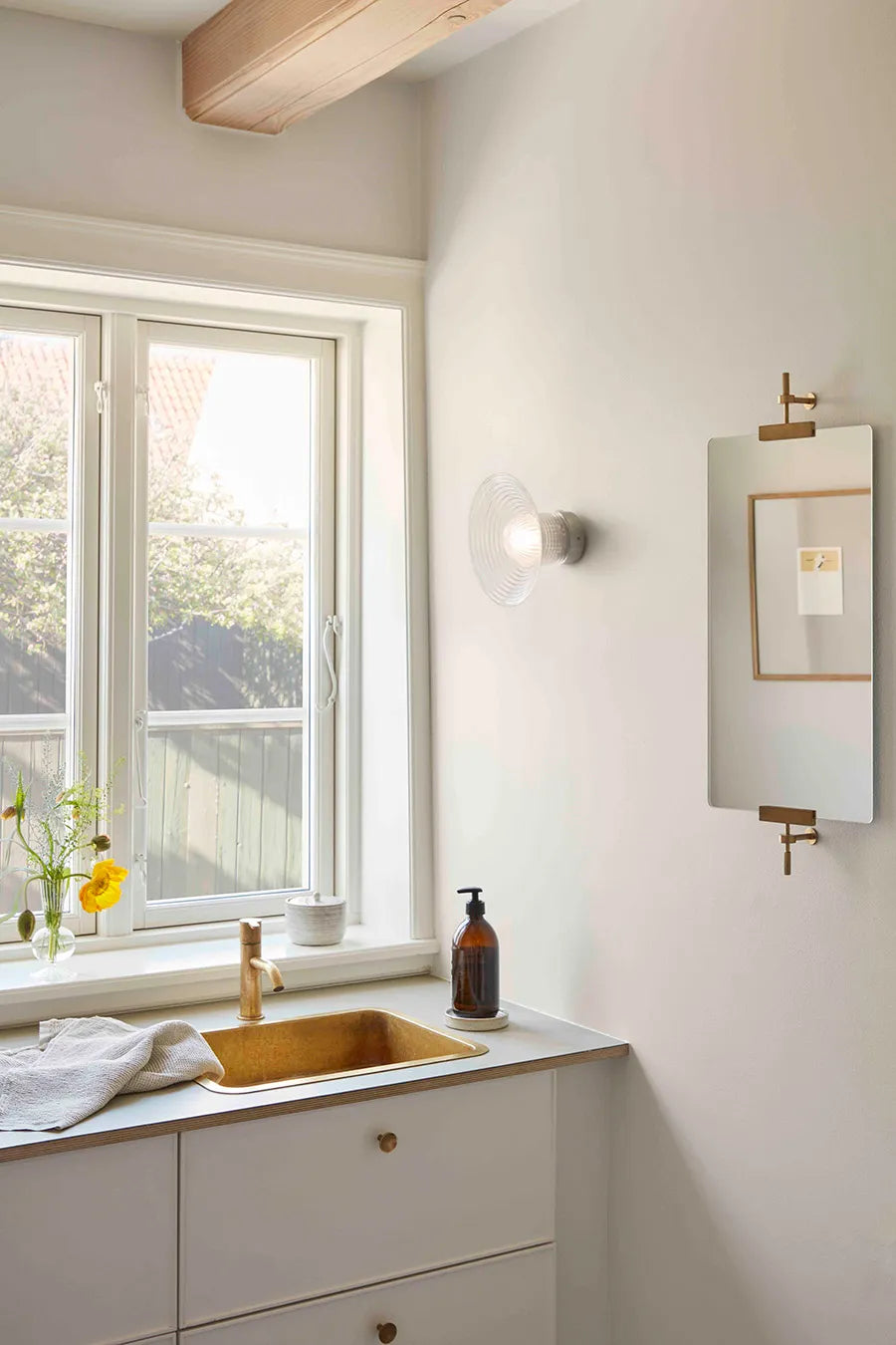 U12 væglampen Sletterhage er designet af Laura Bilde. Væglampen er lavet i aluminium og riflet glas, som giver et flot lys med masser spil.