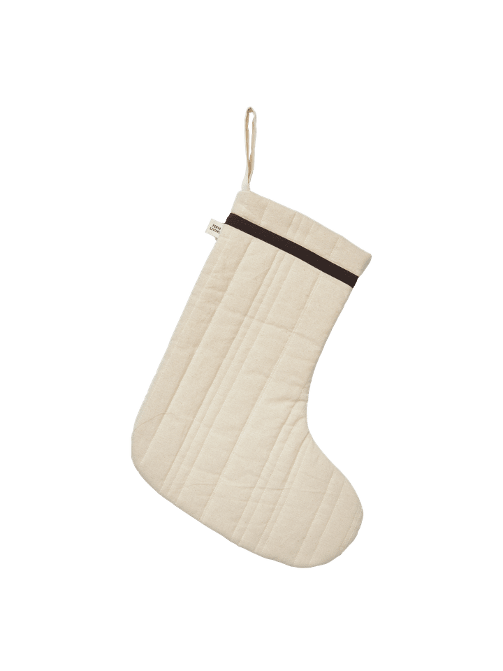 Skab en hyggelig og varm julestemning i hjemmet med Vari Quilted Christmas Stocking fra Ferm Living. Strømpen er designet med et elegant quiltet mønster, som giver et tidløst udtryk, der kan bruges år efter år. Hæng den på pejsen, trappen eller ved børneværelset, og glæd både børn og voksne med små gaver og overraskelser i december. Kombinationen af blødt bomuld og klassisk form gør den til et dekorativt element, der smukt forener tradition og moderne design. Med sin naturlige farver passer den ind i enhver indretning og kan nemt kombineres med øvrige julepynt fra Ferm Living. Vari Quilted Christmas Stocking er en perfekt gaveidé eller tilføjelse til dit eget hjem, hvis du ønsker en raffineret julestemning med skandinavisk kant.