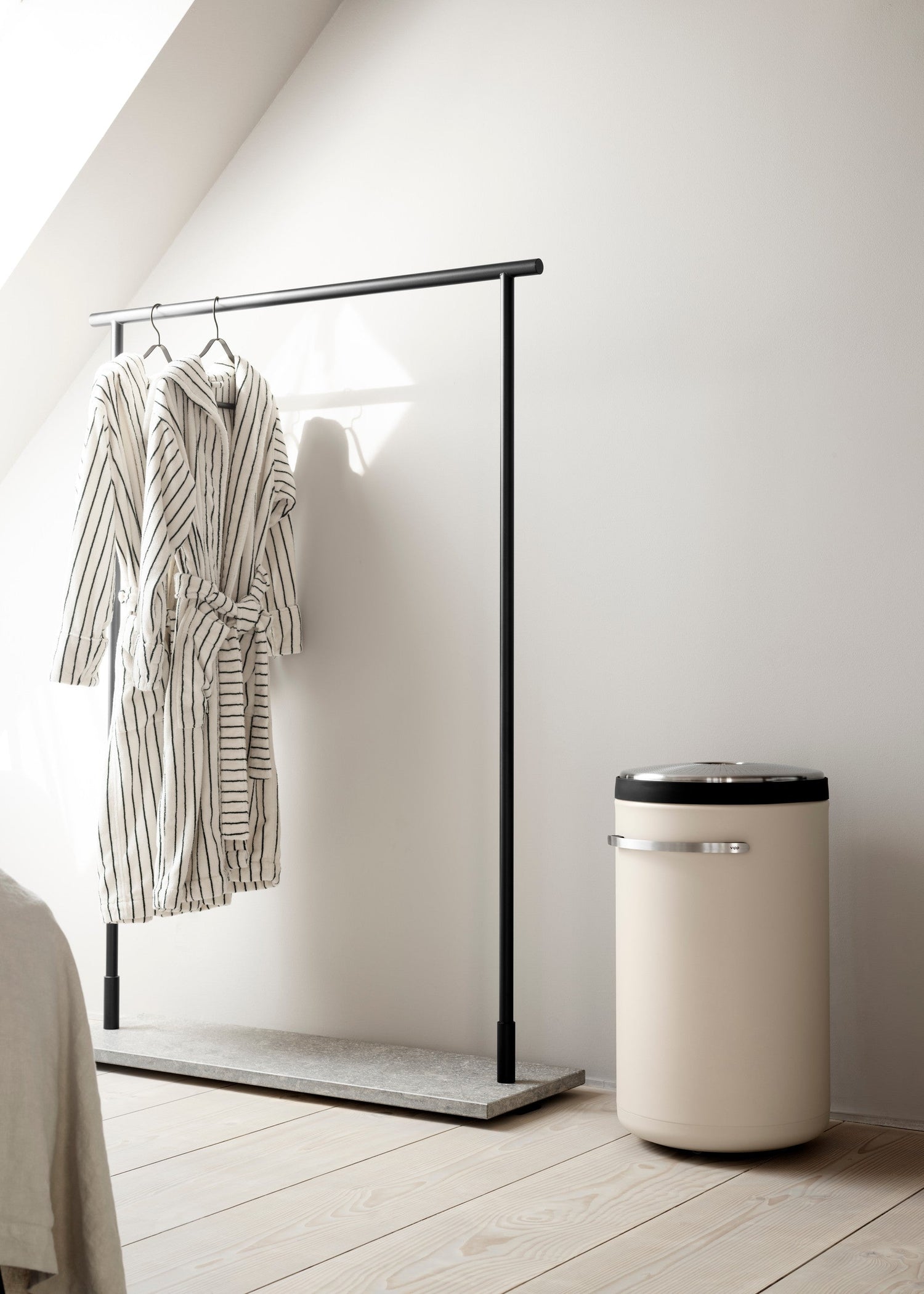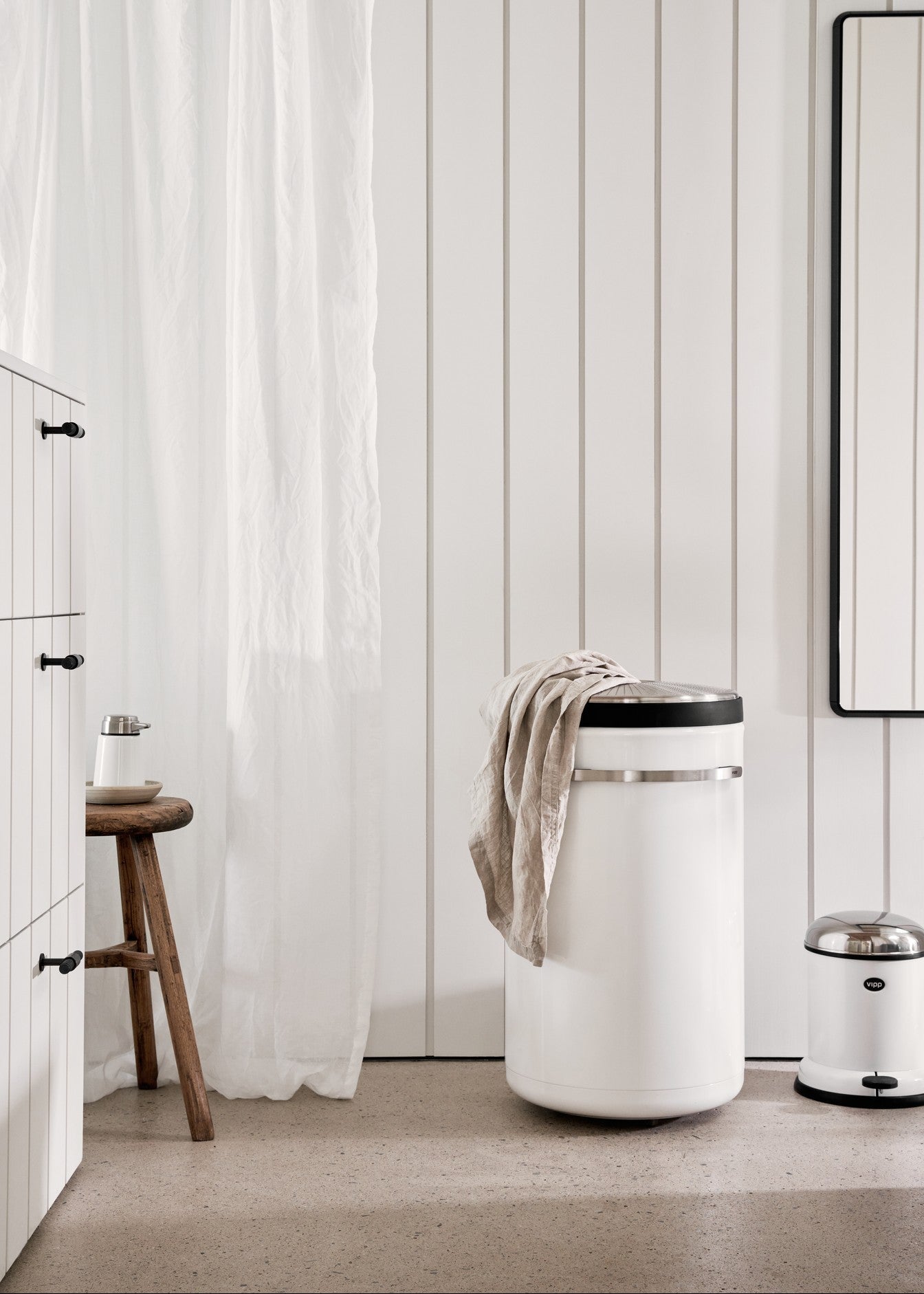 Vipp er et dansk designbrand, der begyndte med en pedalspand i 1939 og siden har udviklet sig til et internationalt livsstilsunivers. Brandet er kendt for sin industrielle æstetik, robuste materialer og kompromisløse funktionalitet. Fra køkkener og badeværelsesløsninger til lamper og møbler skaber Vipp produkter i stål, gummi og pulverlakeret aluminium – alt udført med præcision og sans for detalje. Designet er skarpt, brugervenligt og skabt til lang levetid.
