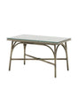 Sofabordet er flettet i en fiber, som til forveksling ligner rattan, men det er fuldstændigt vedligeholdelsesfrit og rengøringsvenligt.