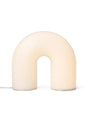 Den skønne Vuelta lampe fra Ferm Living er nu kommet i en større udgave, som har volumen nok til at kunne stå på gulvet. Lampen er en skulpturel bue, som minder om gamle søjler. Vuelta er lavet af opalglas, og giver et dejligt blødt og diffust lys. Lampen kan dæmpes, så den kan give forskellige stemninger.