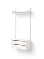 En smuk og praktisk garderobeløsning, hvor du både får bøjlestang og skuffer. New Works' shelving system består af reoler og moduler, der kan sættes sammen på kryds og tværs. Shelving systemet fås i forskellige trævarianter og i forskellige farver. New Works' garderobesystem er alsidigt og stilrent, og du vil helt sikkert kunne finde en variant, der passer ind i dit hjem.