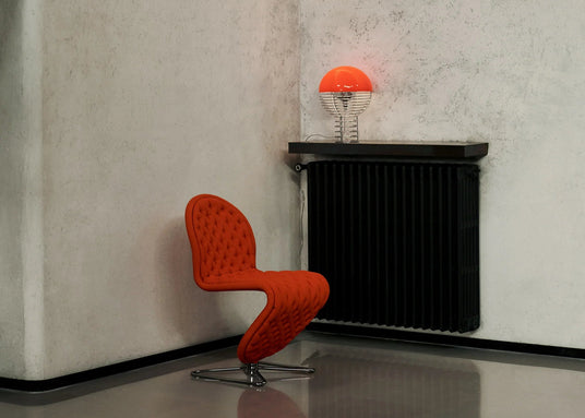 Wire Portable bordlampe af Verner Panton forener ikonisk syverudtryk med moderne frihed. Den lette trådramme løfter den bløde kuppelformede skærm og giver et behageligt, diffust lys der kan flyttes fra stue til altan uden at gå på kompromis med udtrykket. Den bærbare version fanger originalens skulpturelle karakter fra 1972 og tilføjer nutidig funktionalitet med indbygget LED, dæmpning og opladning via USB C. Brug den til stemning på reolen, som natlys eller som elegant ledsager ved dækket bord. De livlige farver giver personlighed til indretningen og gør Wire til et lille designikon med stor effekt.