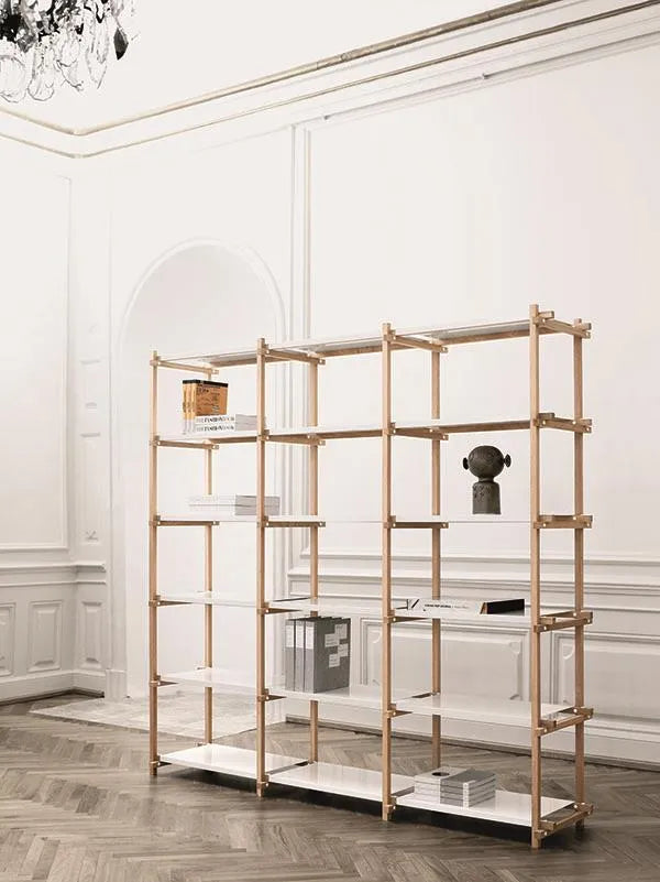 Høj inkl. 18 hylder - H 196.5 x D 44.5 x B 206.5 cm